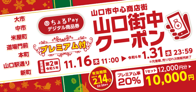 今年も山口中心商店街で利用できるプレミアム付き商品券が販売決定! プレミアム率は20%!