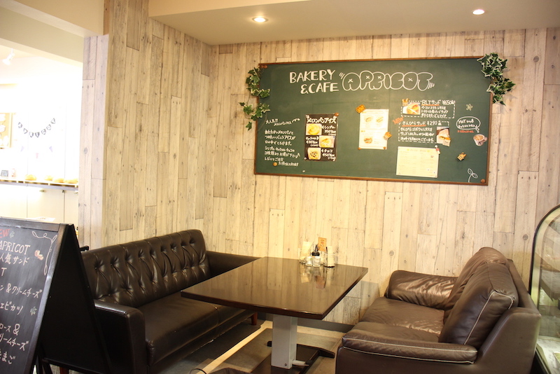 ドアを開けると、ふんわりと広がる焼き立てのパンの香り。店名通りあんず色を基調とした明るい店内は広々としていて、大きなイートインスペースはひと休みするのに最適です。もちろんパンのお持ち帰りもできます。人気につきパンの売り切れには要注意。