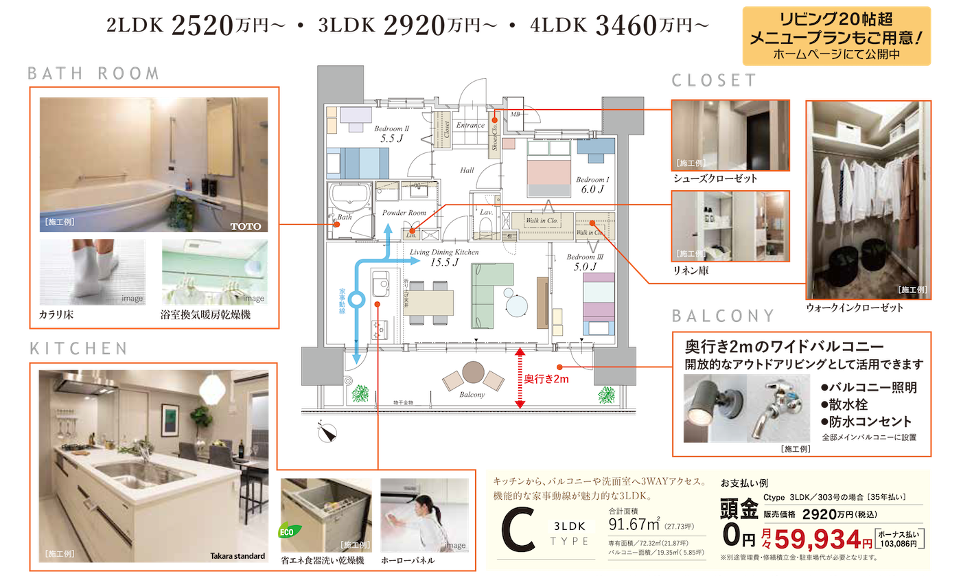 2LDK 2520万円~ 3LDK 2920万円~ 4LDK 3460万円~
