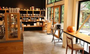 厳選した良質の豆を焙煎するのは、ドイツ製プロバット社の大きくてぶ厚い鉄板で作られた焙煎釜。大きくていねいに豆が廻るので、強い火力でも焦げずにじんわり熱が通る。だから深煎りも浅煎りも苦みが少なく、本来の甘みがよく出て、後口がすっきりふんわりするのです。毎日のコーヒーとしてここで一杯の常連さんや、お散歩・ショッピングのひと休み、自宅用の豆を求めに来られるお客さんが後を裁たないのもうなずけます。