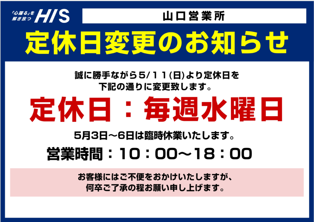 HIS 山口営業所 エイチアイエスヤマグチエイギョウショ