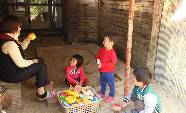 「ほっとさろん西門前てとてと」は街中ならではのよさが。ご近所の八百屋さんや魚屋さんでお買い物して、お話をする。「おみせやさん」にこどももびっくり。施設を一歩出てもちょっとお散歩したくなる。「みんなが見守る子育て」という感覚がうれしいまちです。