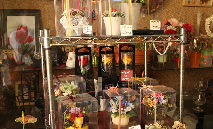 冠婚葬祭すべてに対応できるお花の「何でも屋さん」。花に関するものは大抵手に入ります。