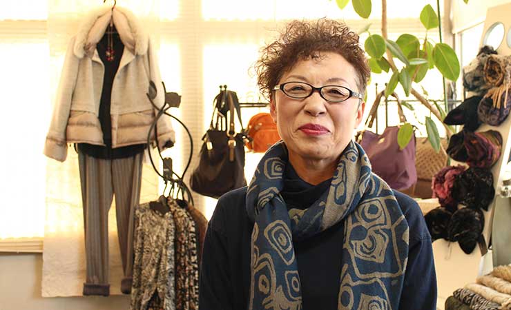 「昔から変わらず通って下さる固定のお客様が多いので、仕入の際にはお客様の好みを配慮するようにしています。こんな商品があれば喜んで下さるのでは・・・と自然に考えてしまっていますね。ゆったりと買い物が出来るようにテーブルスペースもあります。ここでおしゃべりしながらお買い物を楽しんで行かれる方もいらっしゃいますよ」(スタッフのみなさん)。明るいBGMが流れる中、ファッションのことや日々の生活のこと等、和やかな会話に花が咲く店内。思わず長居してしまいそうな居心地のよい空間でお買い物を楽しんでみてはいかがでしょうか。