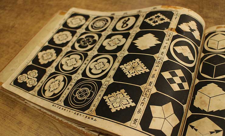 主に呉服からの依頼で「紋入れ」の仕事も行ってます。数千種類の紋が書かれた型台帳のようなもので確認し、型紙で着物に刷り込み、筆で仕上げていきます。紋を表す技法は、大きく「染め」と「刺繍」があり、紋形を白く染め抜く「染め抜き紋」と、色で紋を描くものがあります。格の高さの違いや技法による違いなど、好みでつける紋など、様々な種類があるので、何を付けるといいか悩んだら、ぜひ「金子染物店」で相談してみてください。